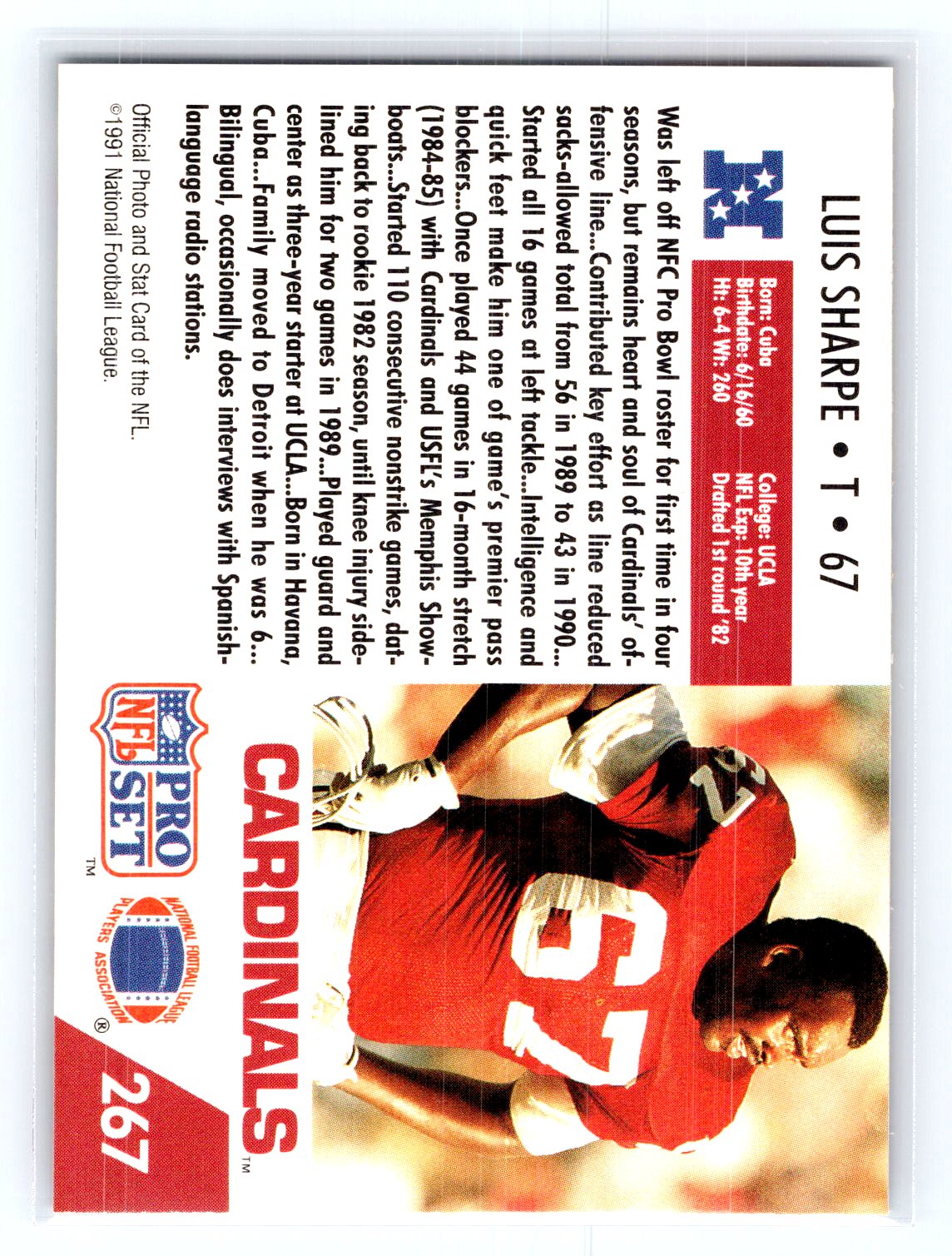 This is a really nice example of a 1991 Pro Set #267 Luis Sharpe .