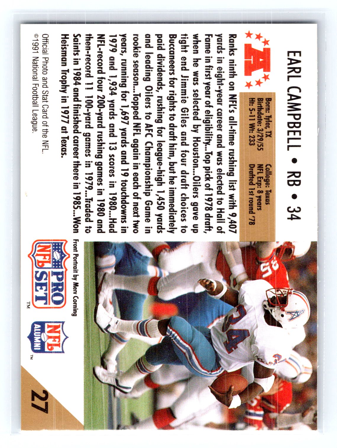 This is a really nice example of a 1991 Pro Set #27 Earl Campbell .