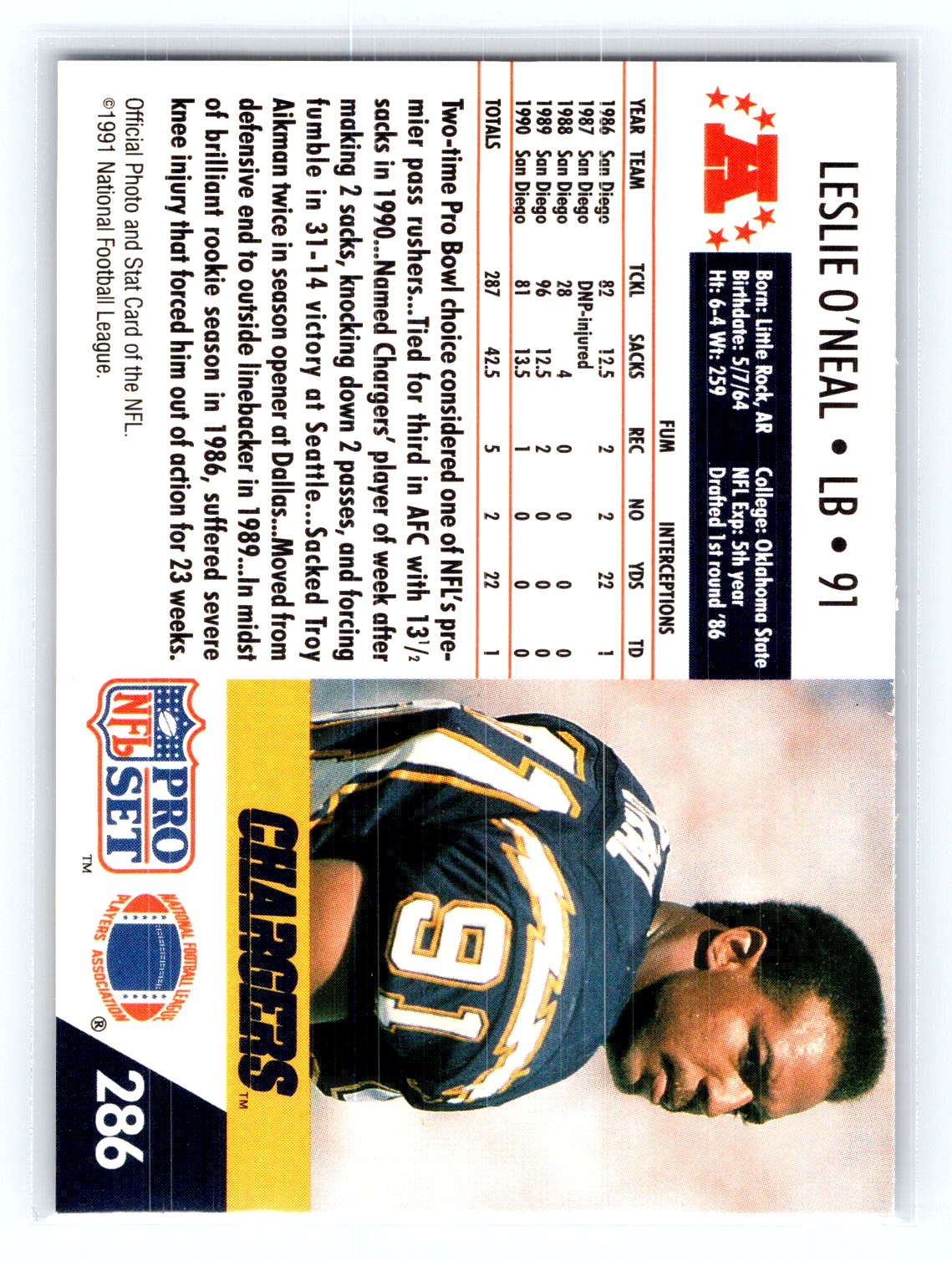 This is a really nice example of a 1991 Pro Set #286 Leslie O'Neal .