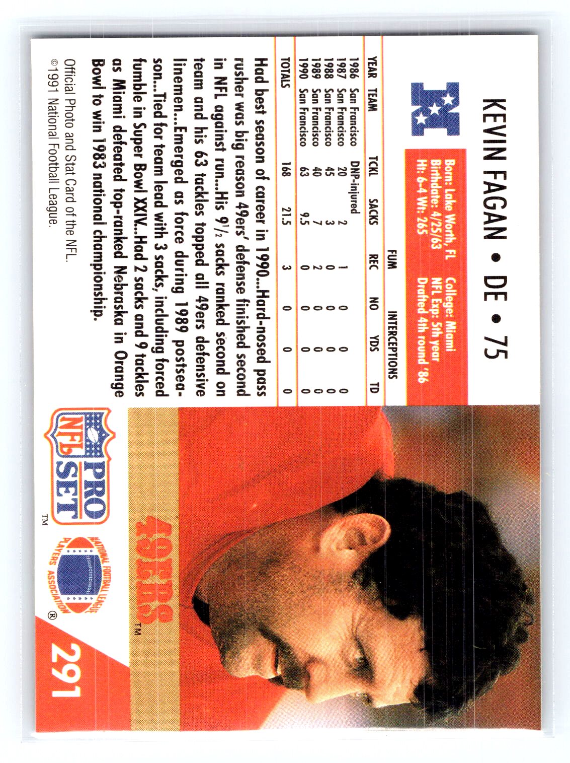 In 1991 Kevin Fagan played for the San Francisco 49ers.