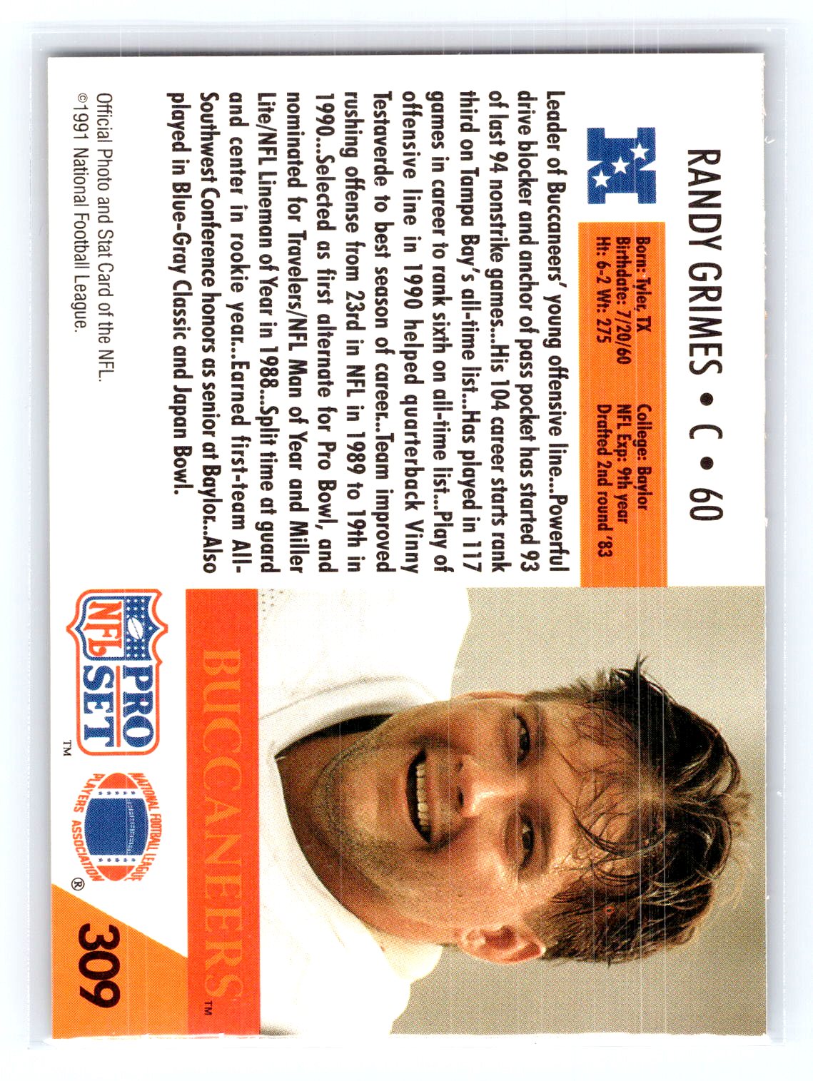 This is a really nice example of a 1991 Pro Set #309 Randy Grimes .