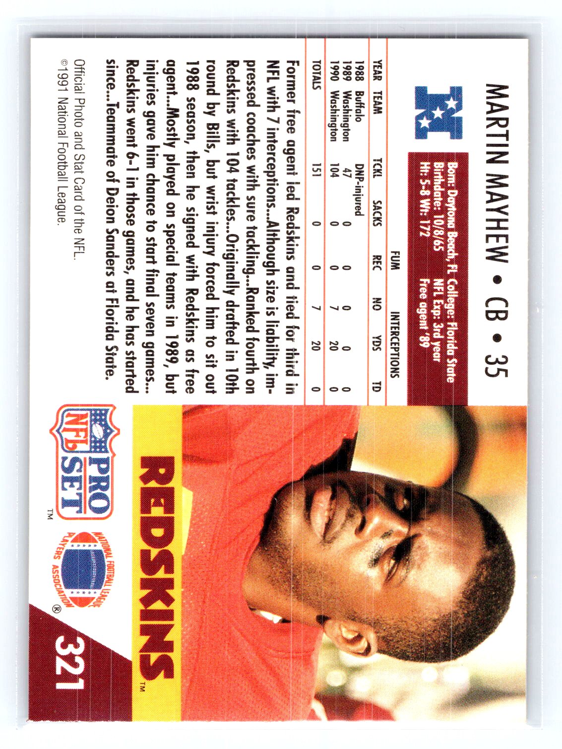 This is a really nice example of a 1991 Pro Set #321 Martin Mayhew .