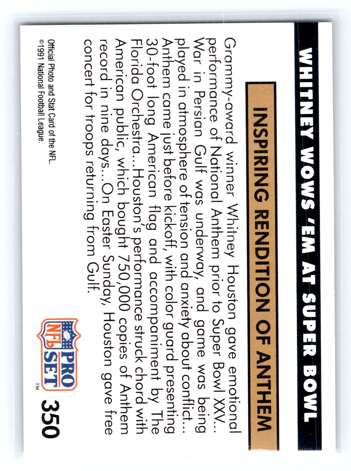 This is a really nice example of a 1991 Pro Set #350 Whitney Wows 'Em At Super Bowl .