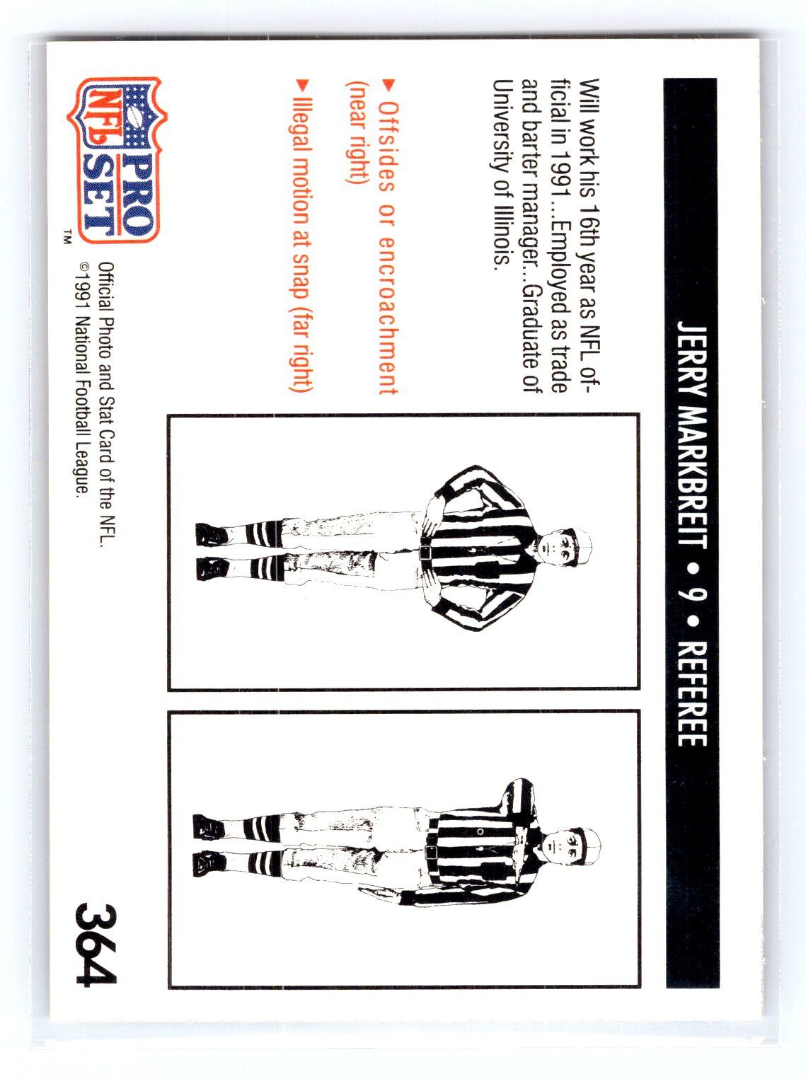 This is a really nice example of a 1991 Pro Set #364 Jerry Markbreit .
