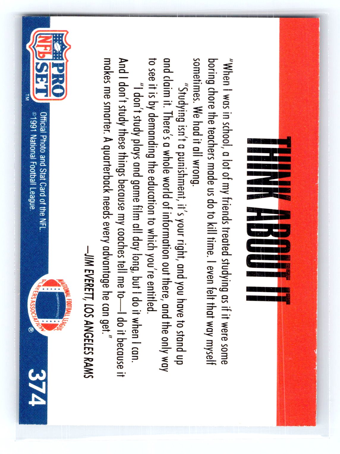 This is a really nice example of a 1991 Pro Set #374a Jim Everett .