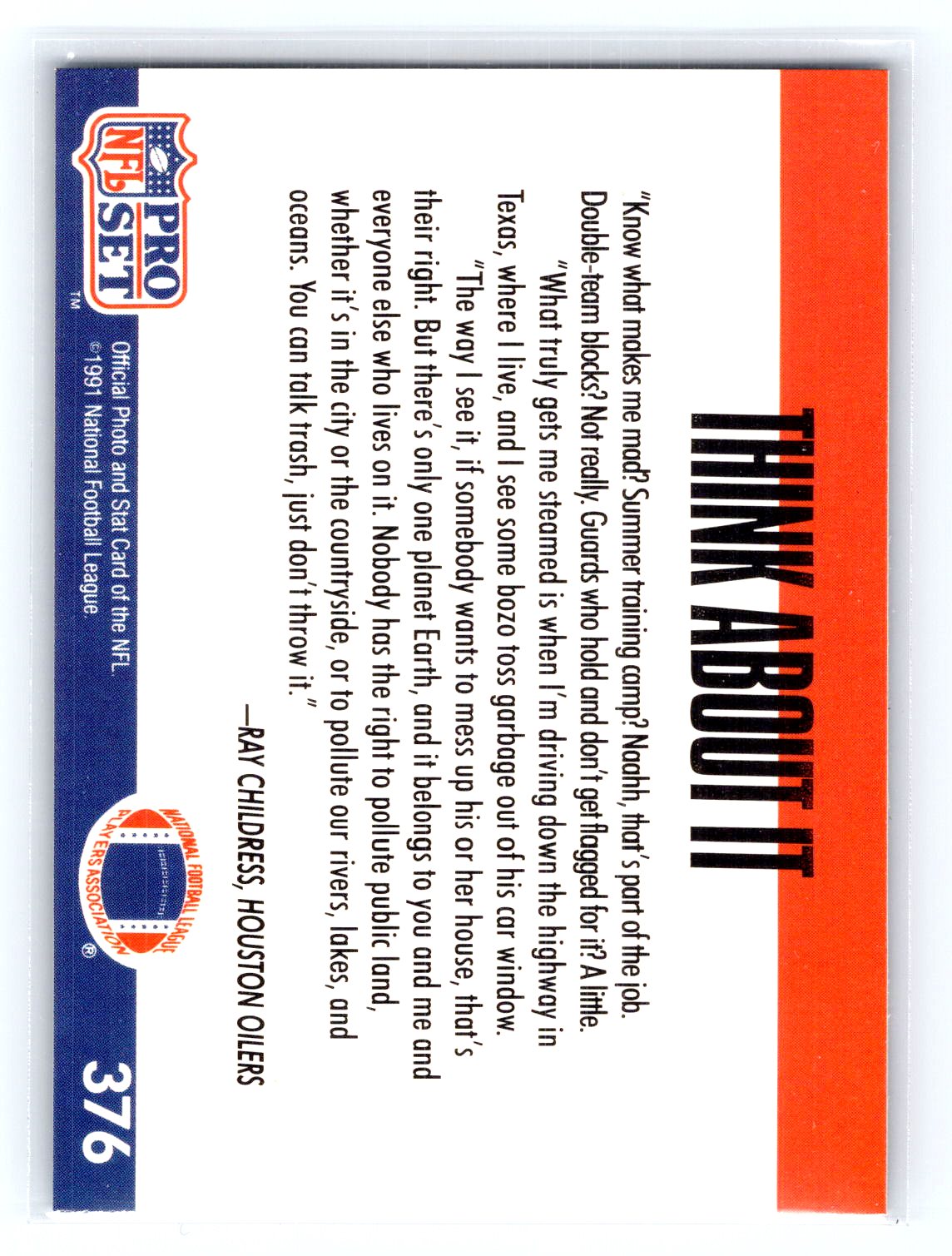 This is a really nice example of a 1991 Pro Set #376a Ray Childress .