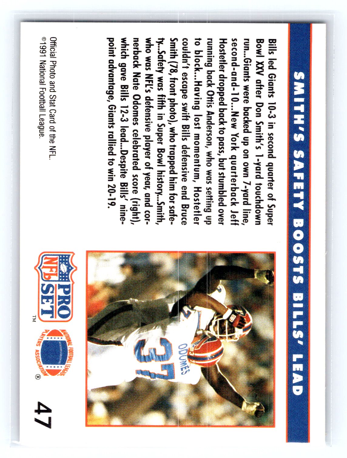 This is a really nice example of a 1991 Pro Set #47b Smith's Safety Boosts Bills' Lead .