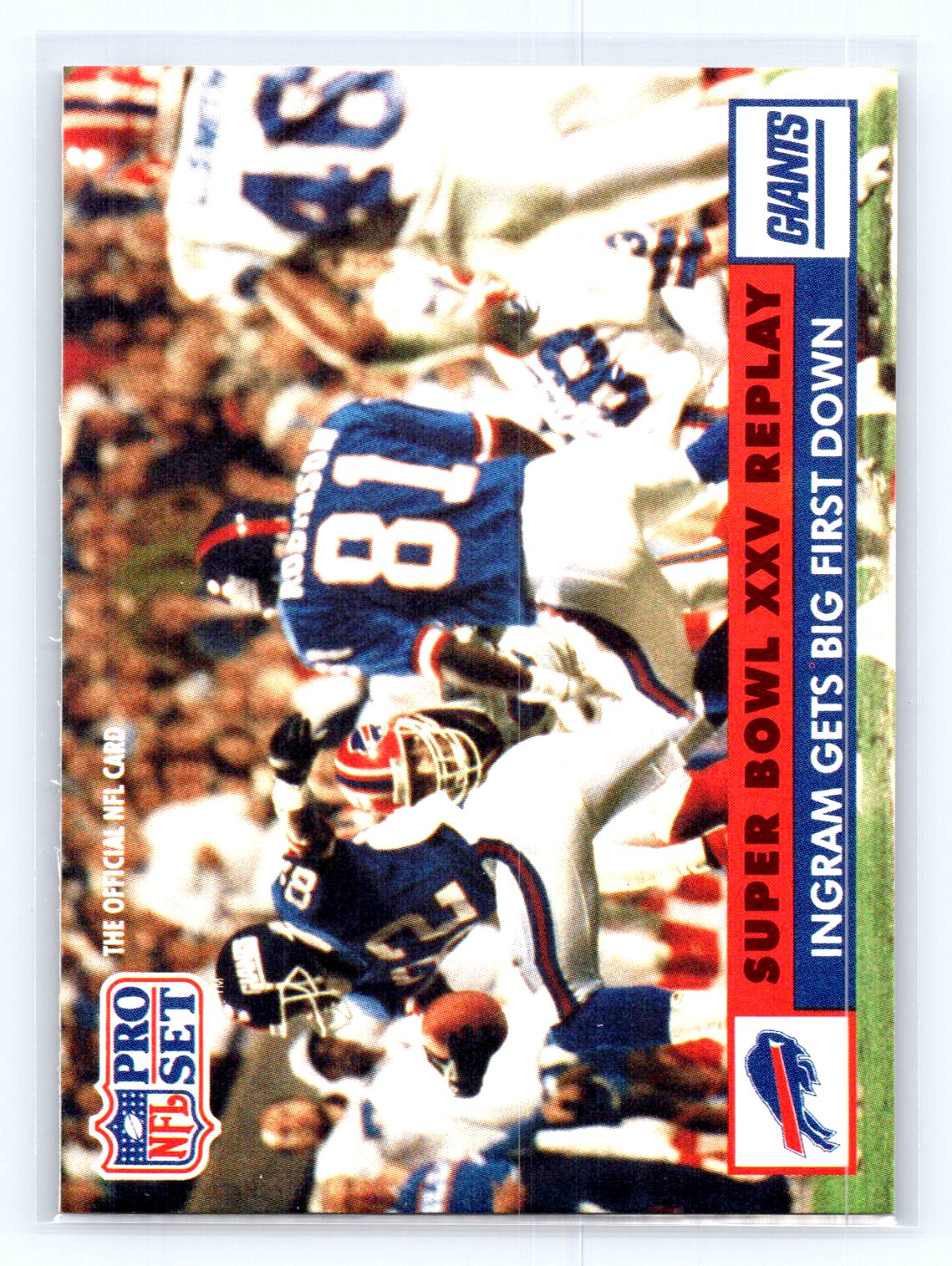 Other important information about this card: SBXXV Ingram Gets Big First Down UER First repeated on back;.