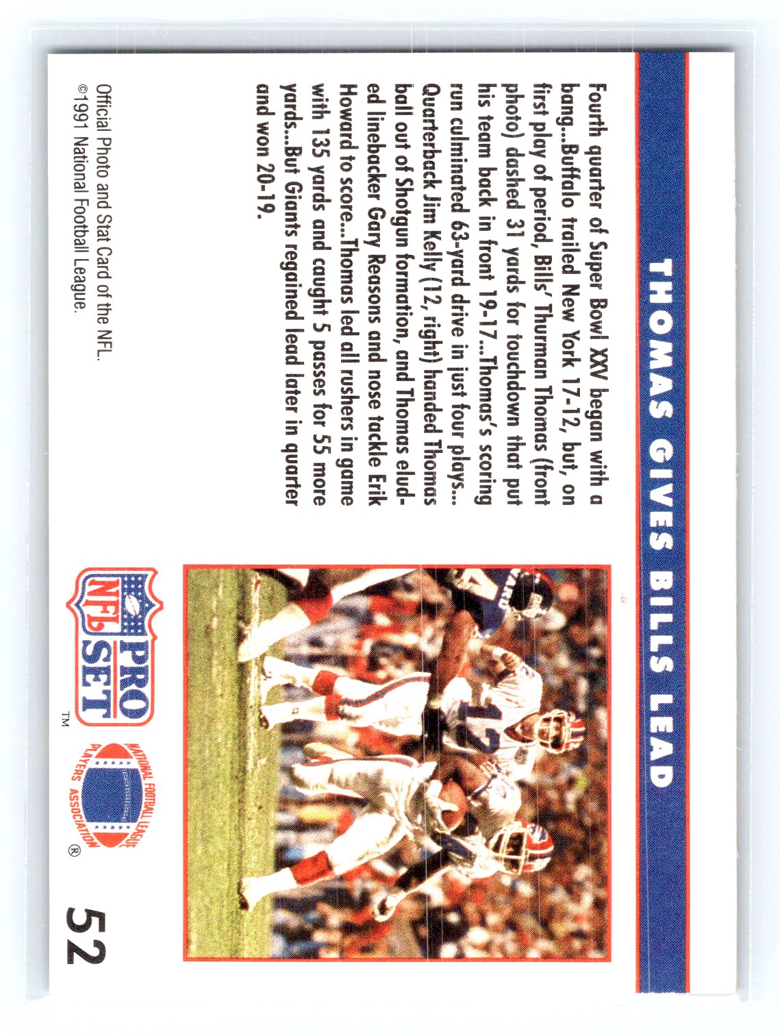 This is a really nice example of a 1991 Pro Set #52 Thomas Gives Bills Lead .