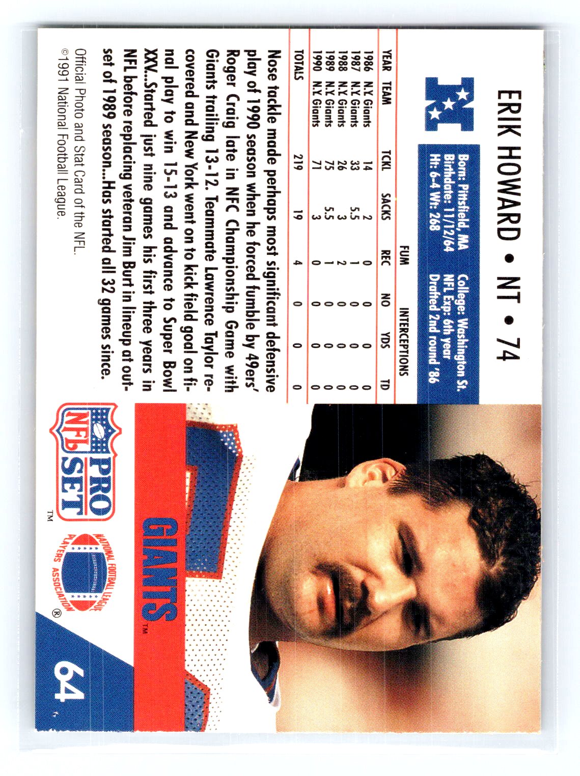 This is a really nice example of a 1991 Pro Set #64 Erik Howard .