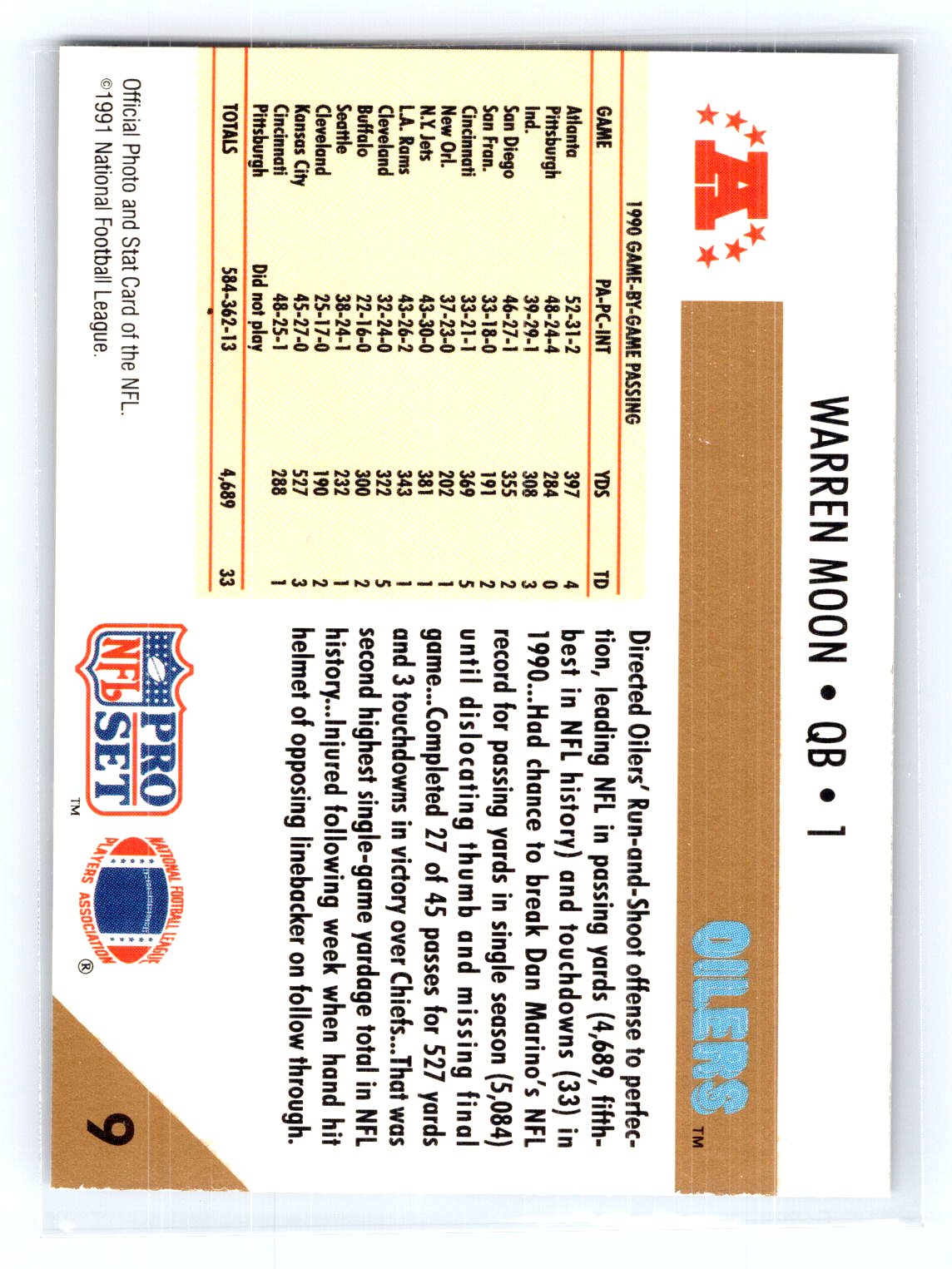 1991 Pro Set #9 Warren Moon