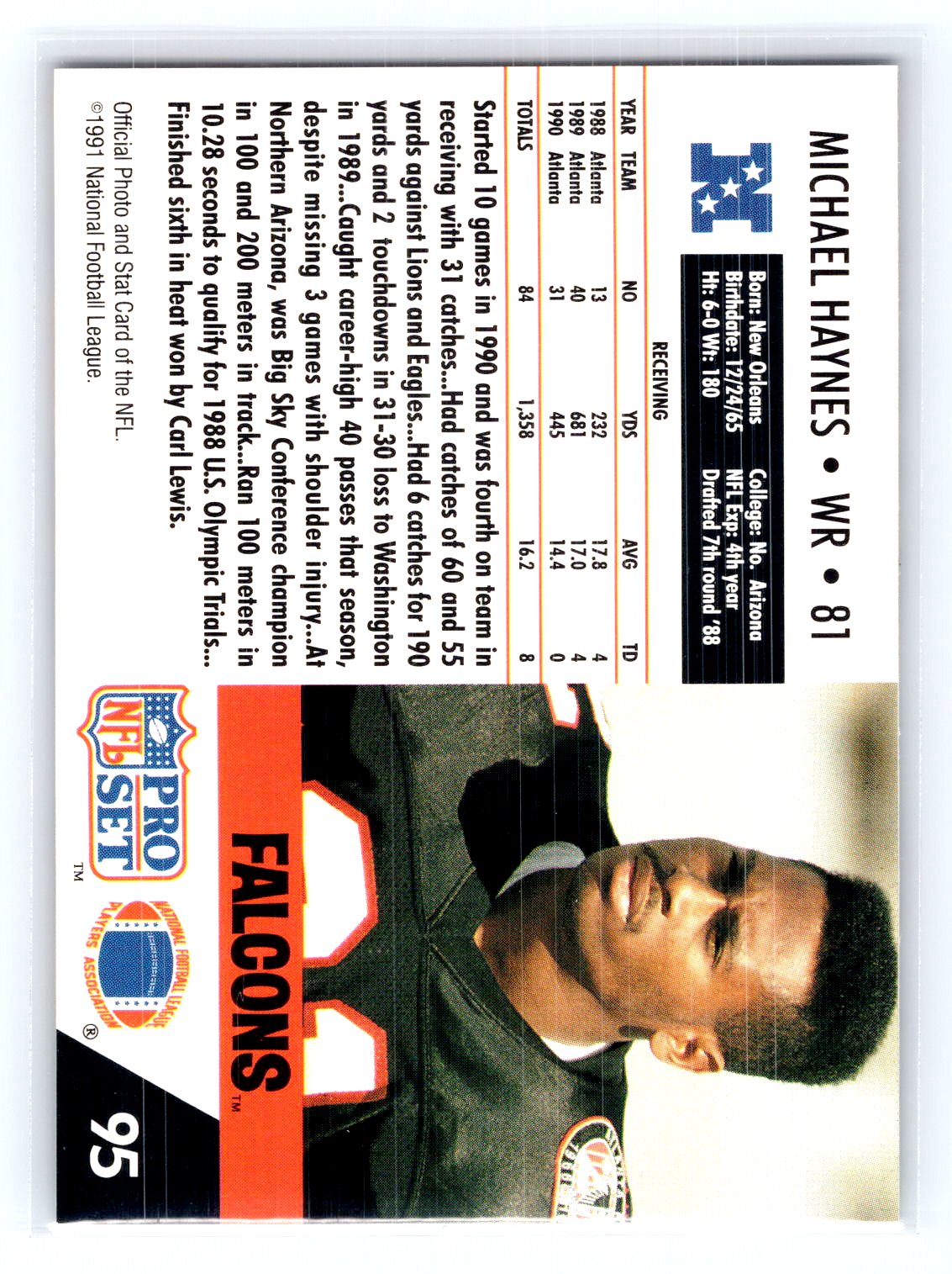 This is a really nice example of a 1991 Pro Set #95 Michael Haynes .