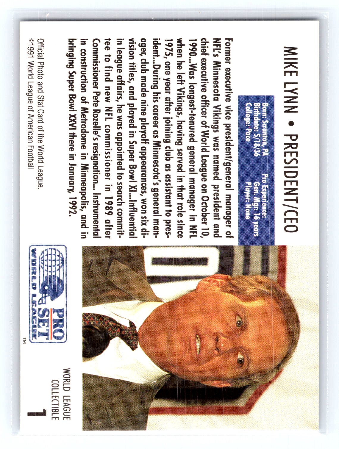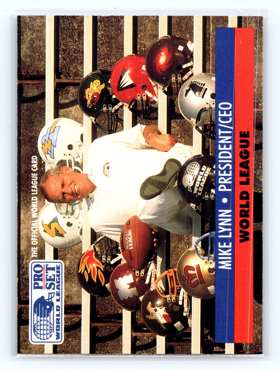 This is a really nice example of a 1991 Pro Set WLAF World Bowl Combo #1 Mike Lynn .