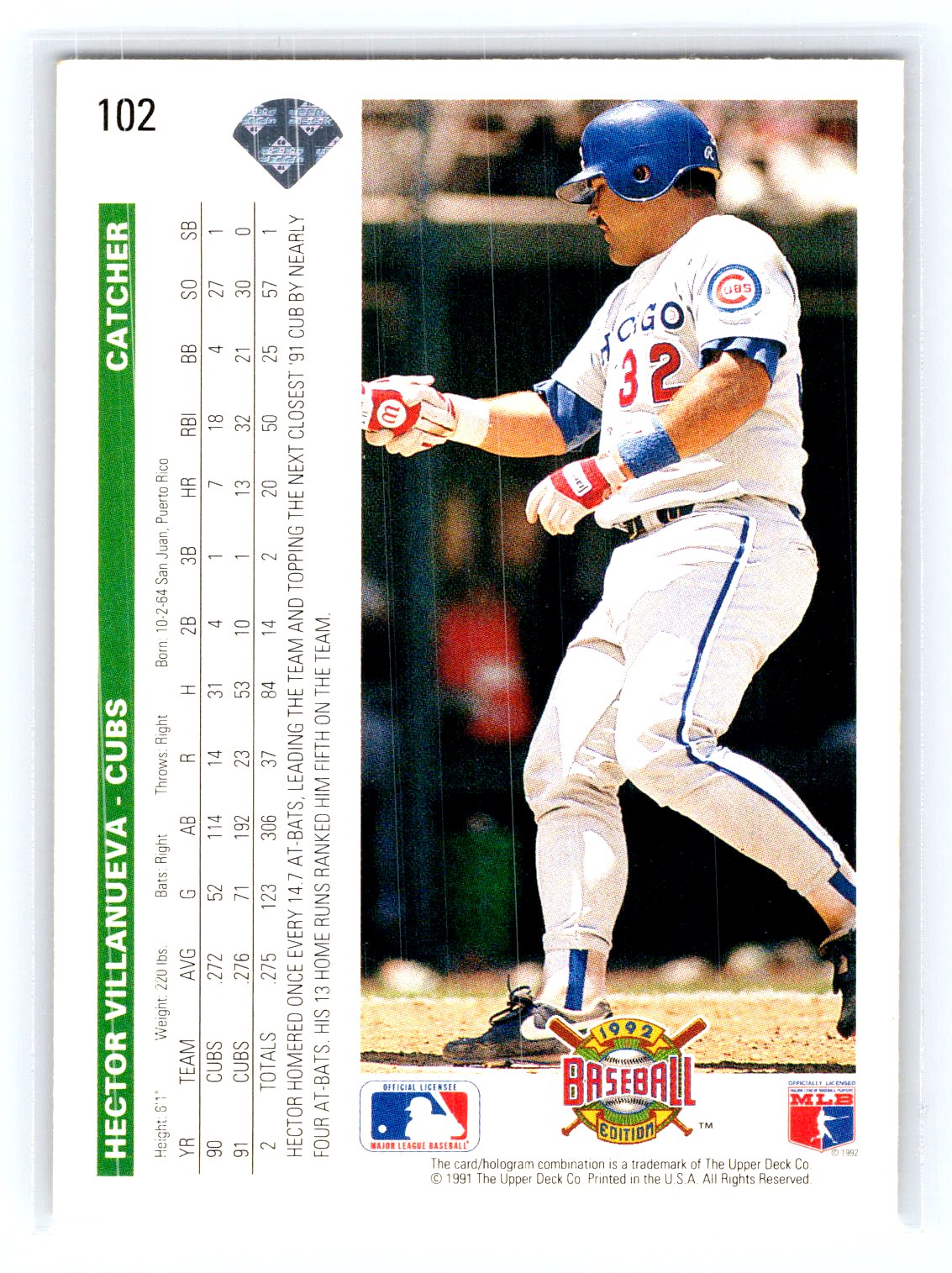 This is a really nice example of a 1992 Upper Deck #102 Hector Villanueva .