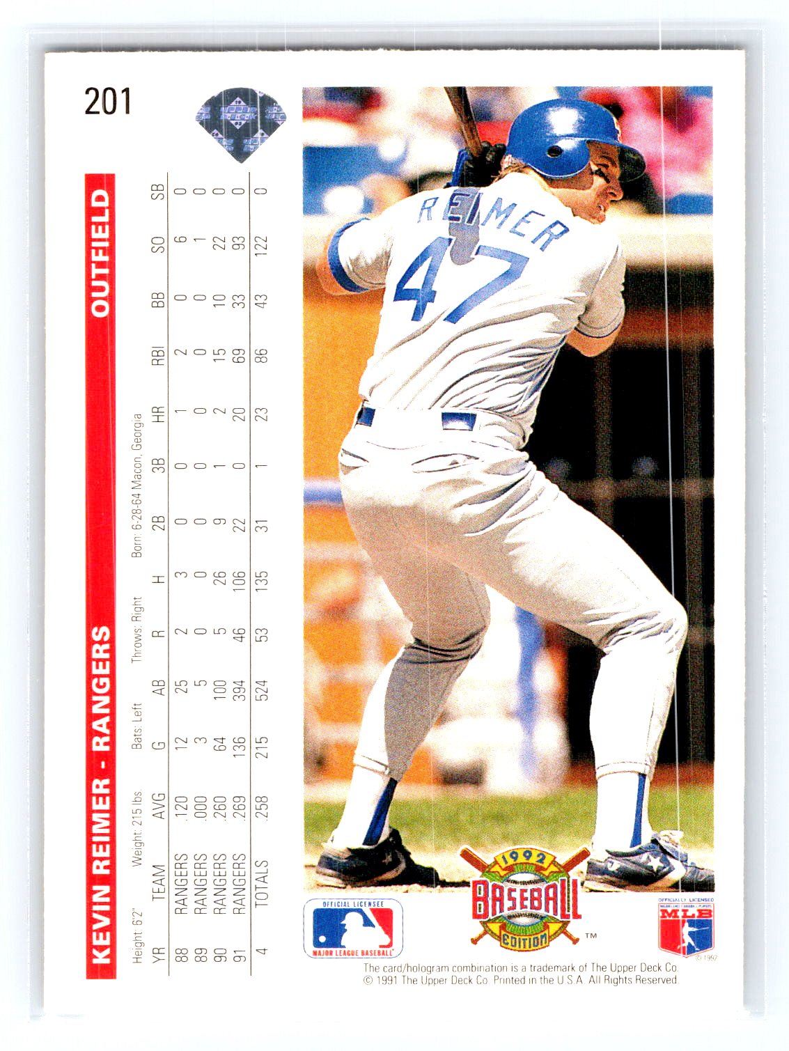 This is a really nice example of a 1992 Upper Deck #201 Kevin Reimer .