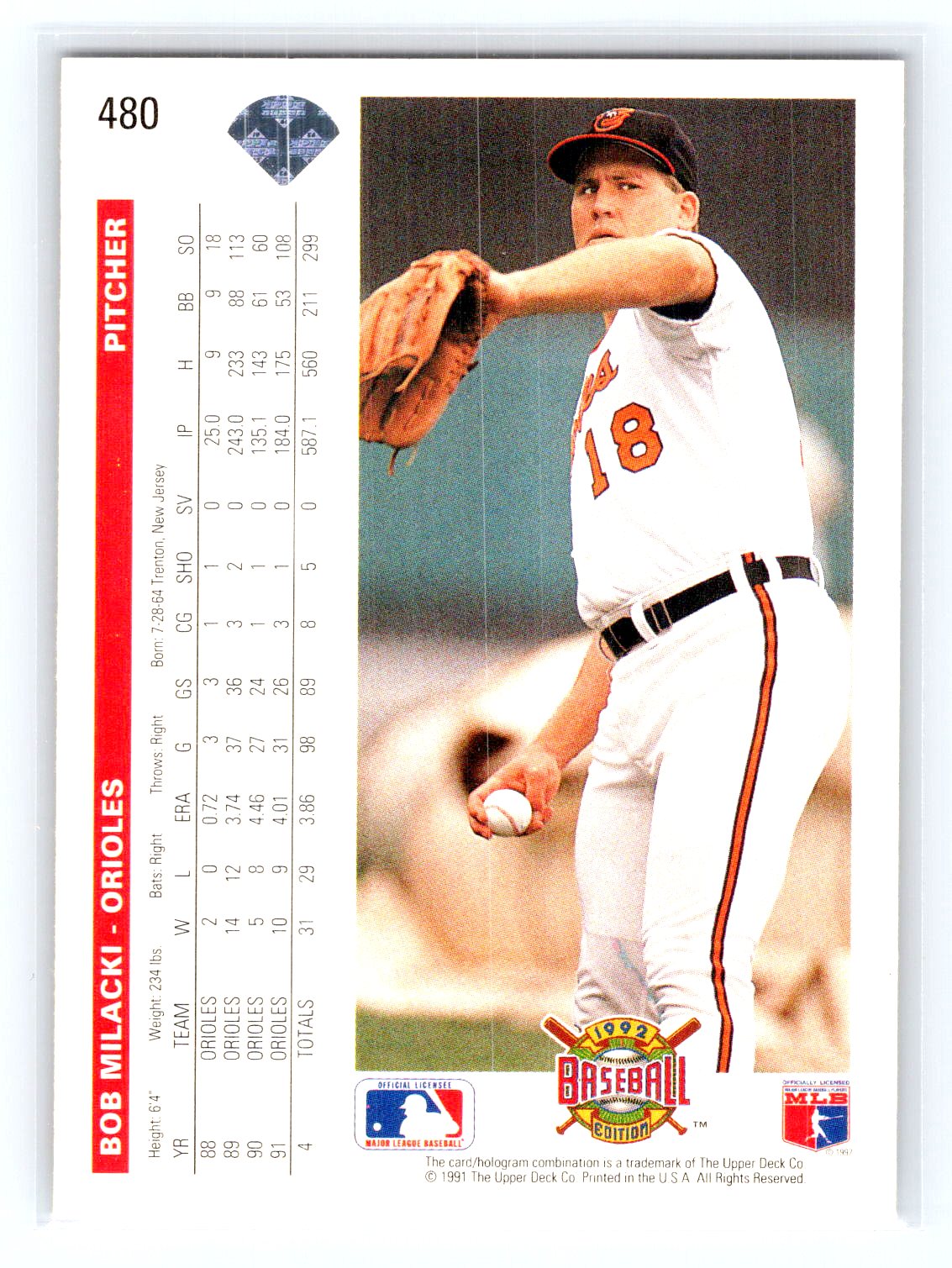 1992 Upper Deck #480 Bob Milacki