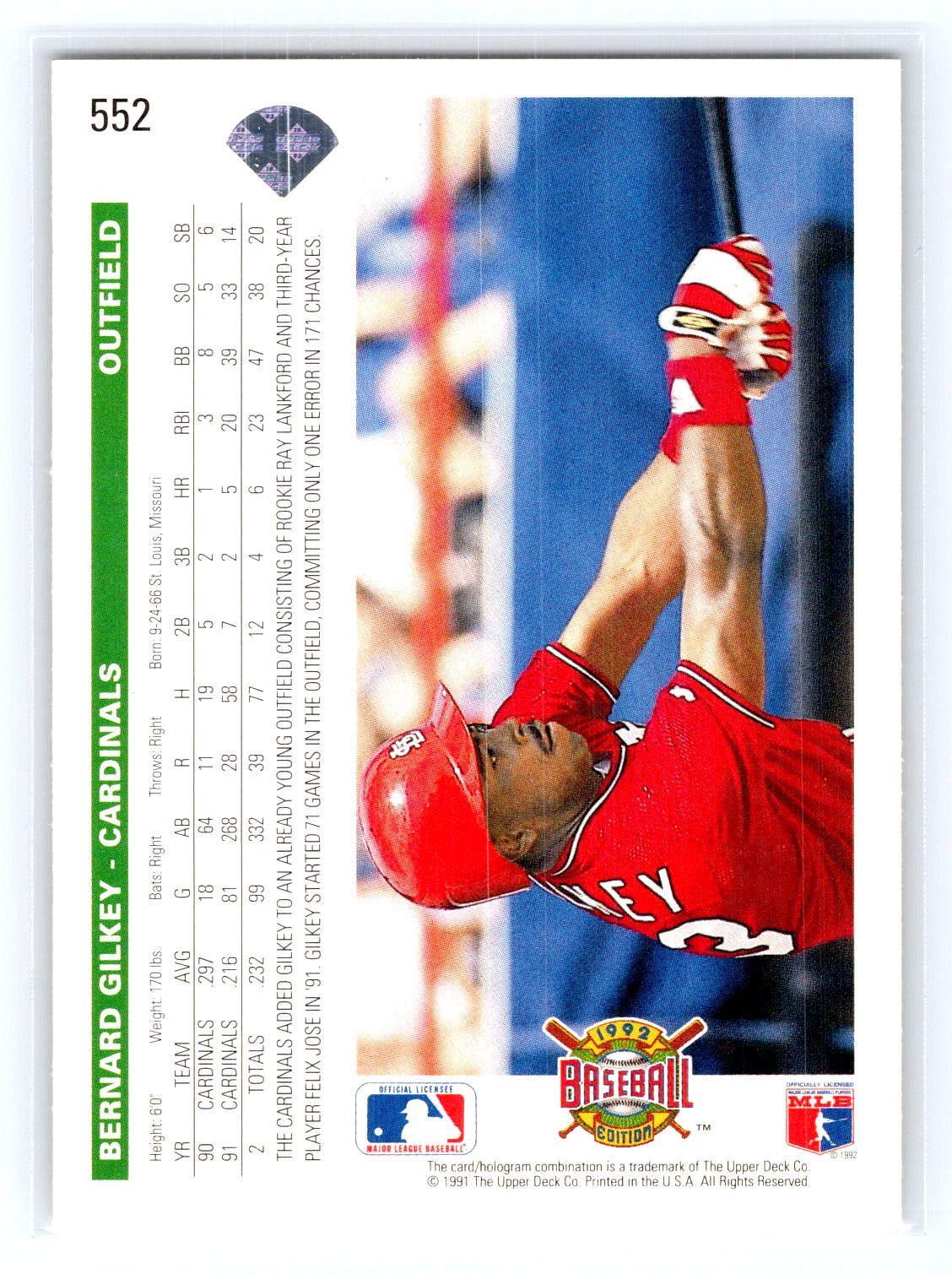 This is a really nice example of a 1992 Upper Deck #552 Bernard Gilkey .