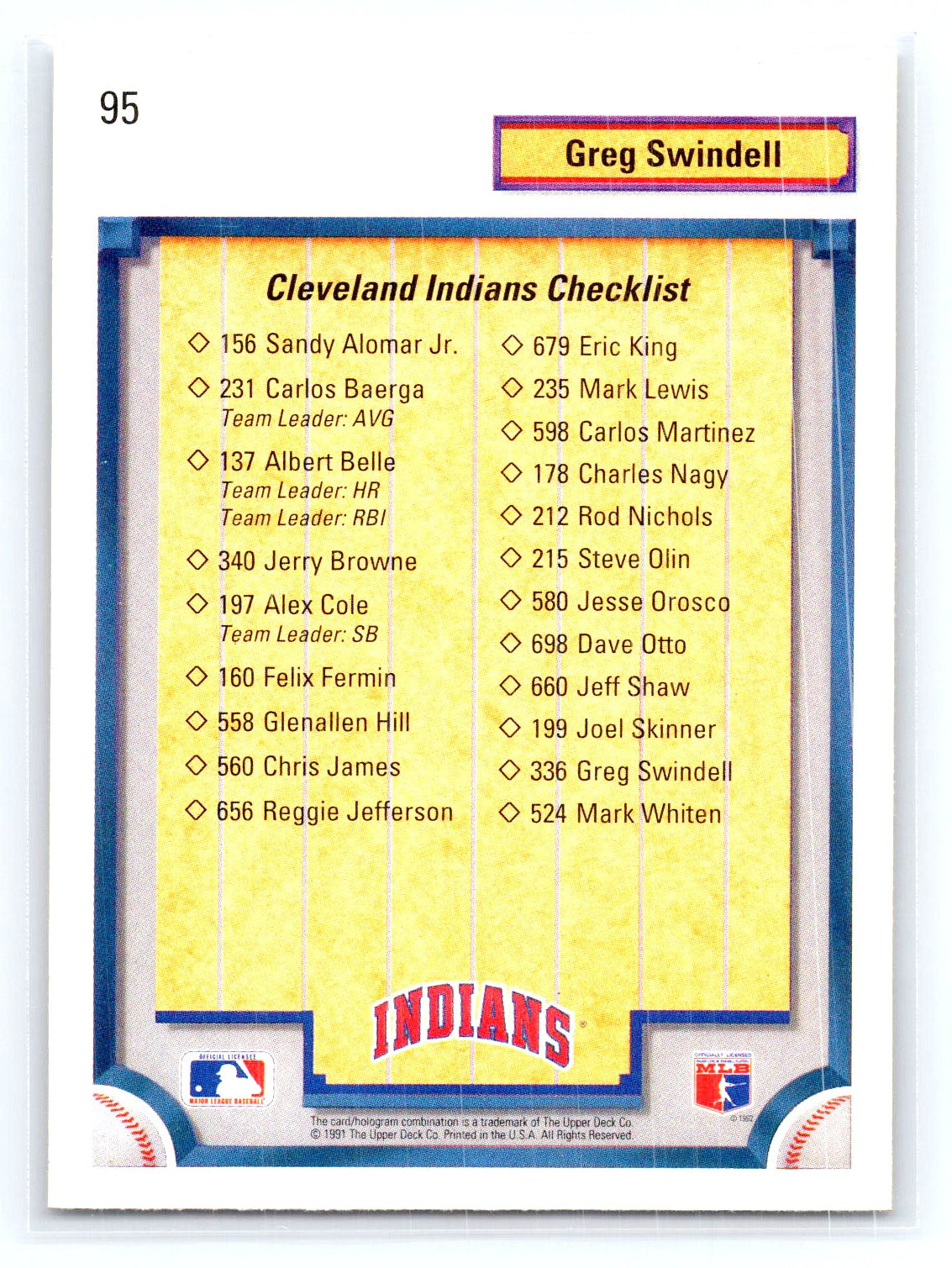 This is a really nice example of a 1992 Upper Deck #95 Greg Swindell .