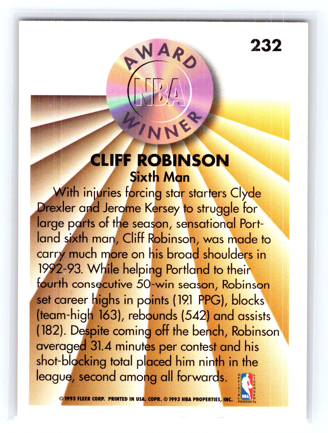 This is a really nice example of a 1993-94 Fleer #232 Clifford Robinson .
