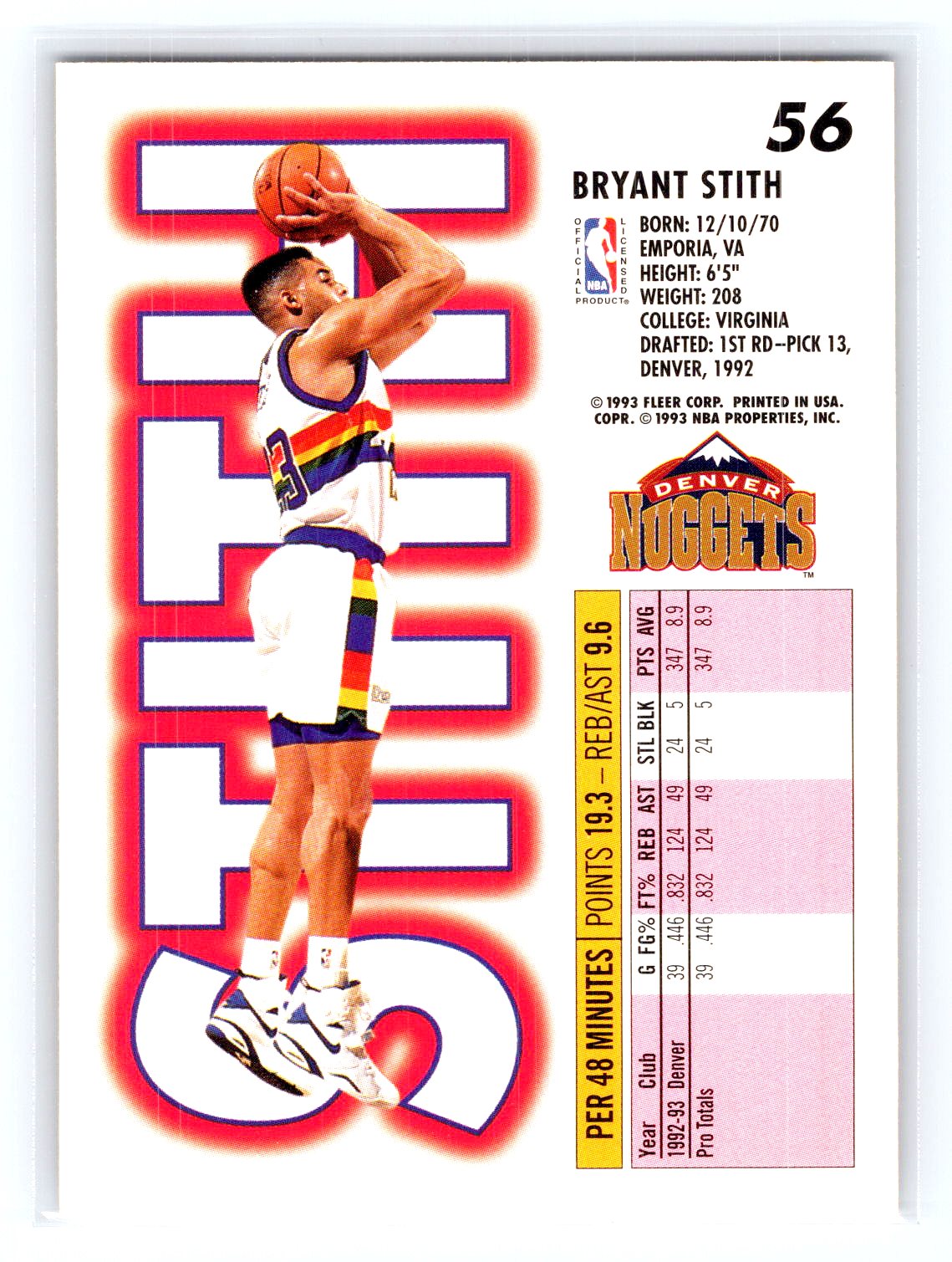 This is a really nice example of a 1993-94 Fleer #56 Bryant Stith .