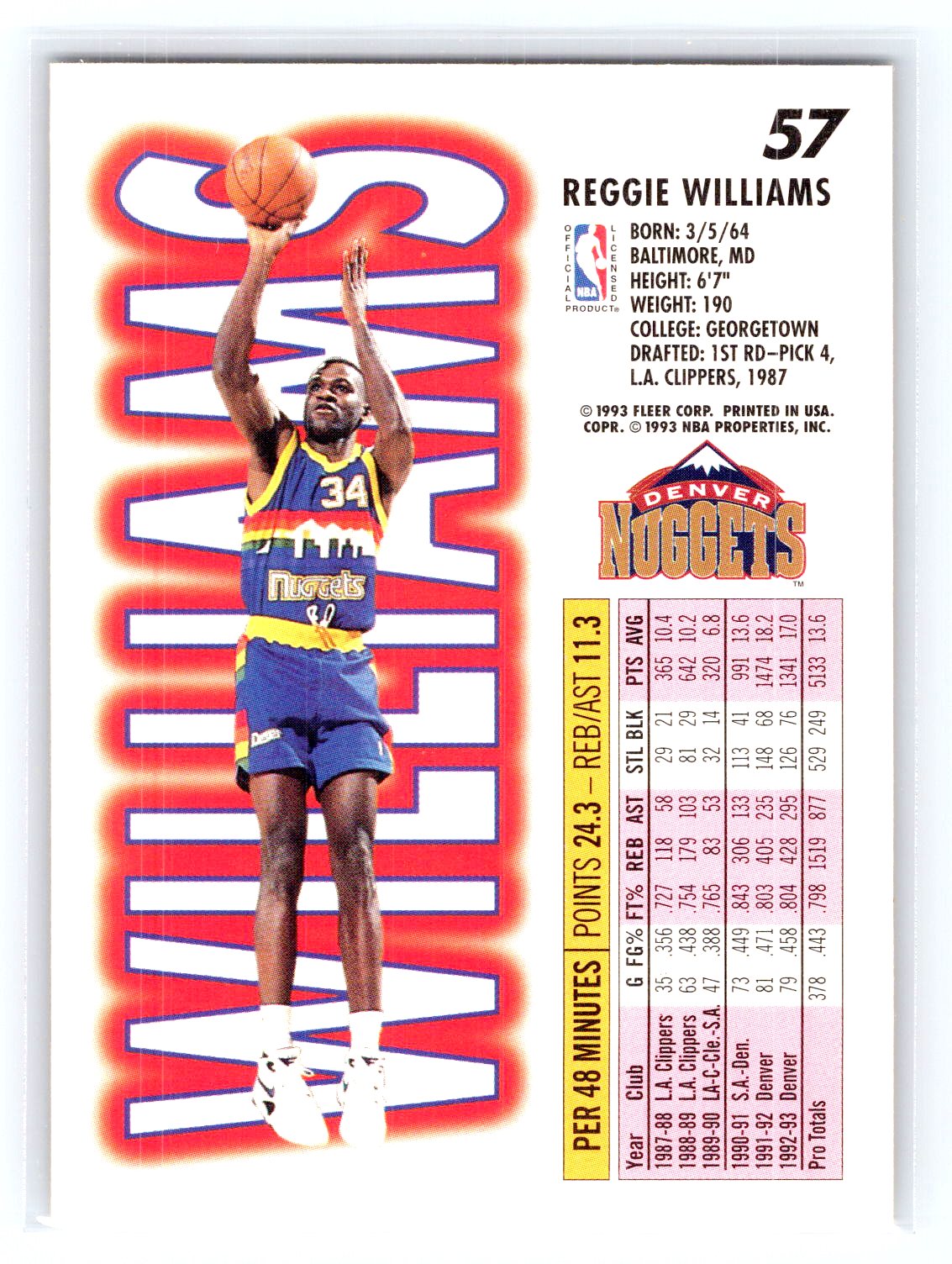 In 1993 Reggie Williams played for the Denver Nuggets.