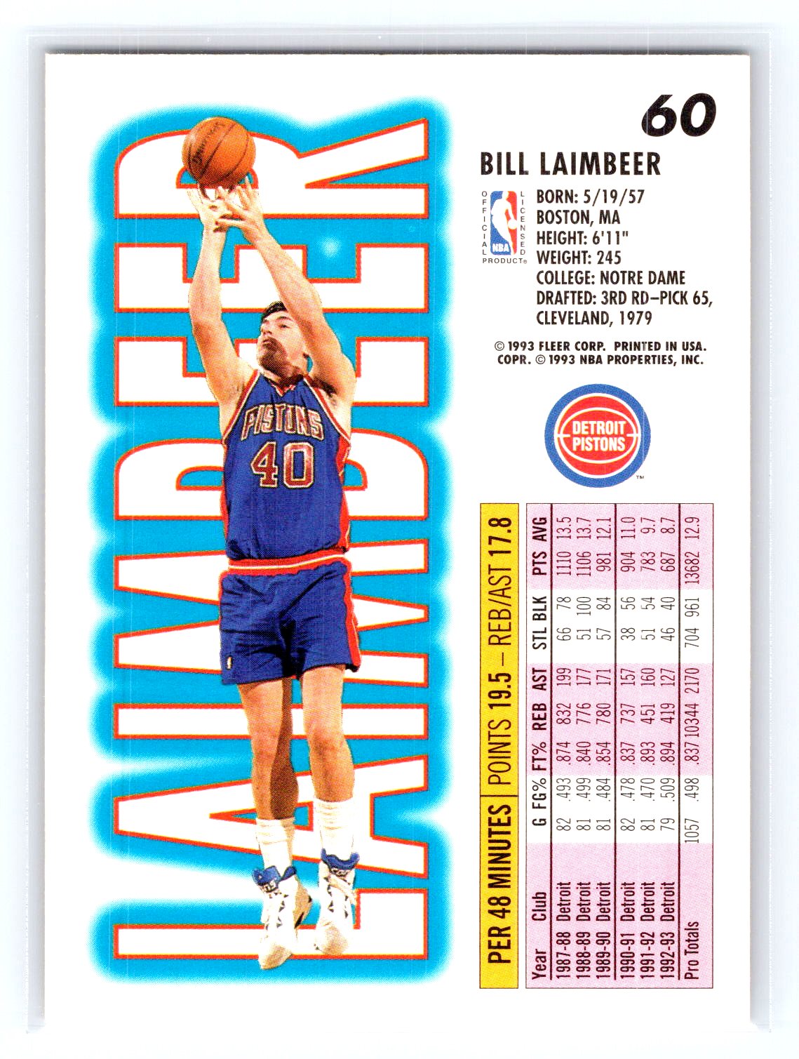 This is a really nice example of a 1993-94 Fleer #60 Bill Laimbeer .