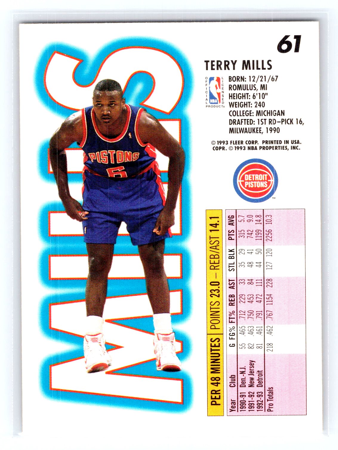 1993-94 Fleer #61 Terry Mills