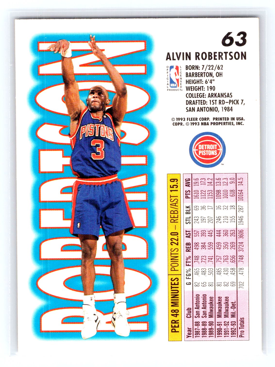 This is a really nice example of a 1993-94 Fleer #63 Alvin Robertson .