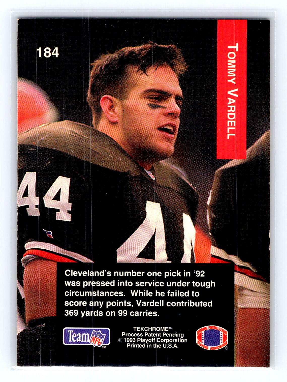 This is a really nice example of a 1993 Playoff #184 Tommy Vardell .