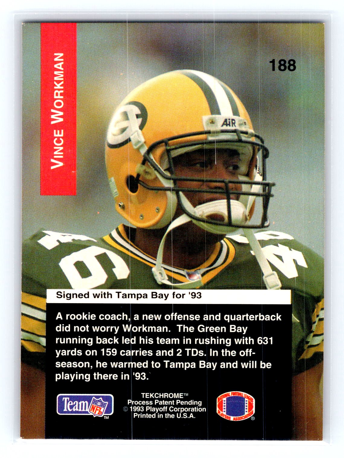 This is a really nice example of a 1993 Playoff #188 Vince Workman .