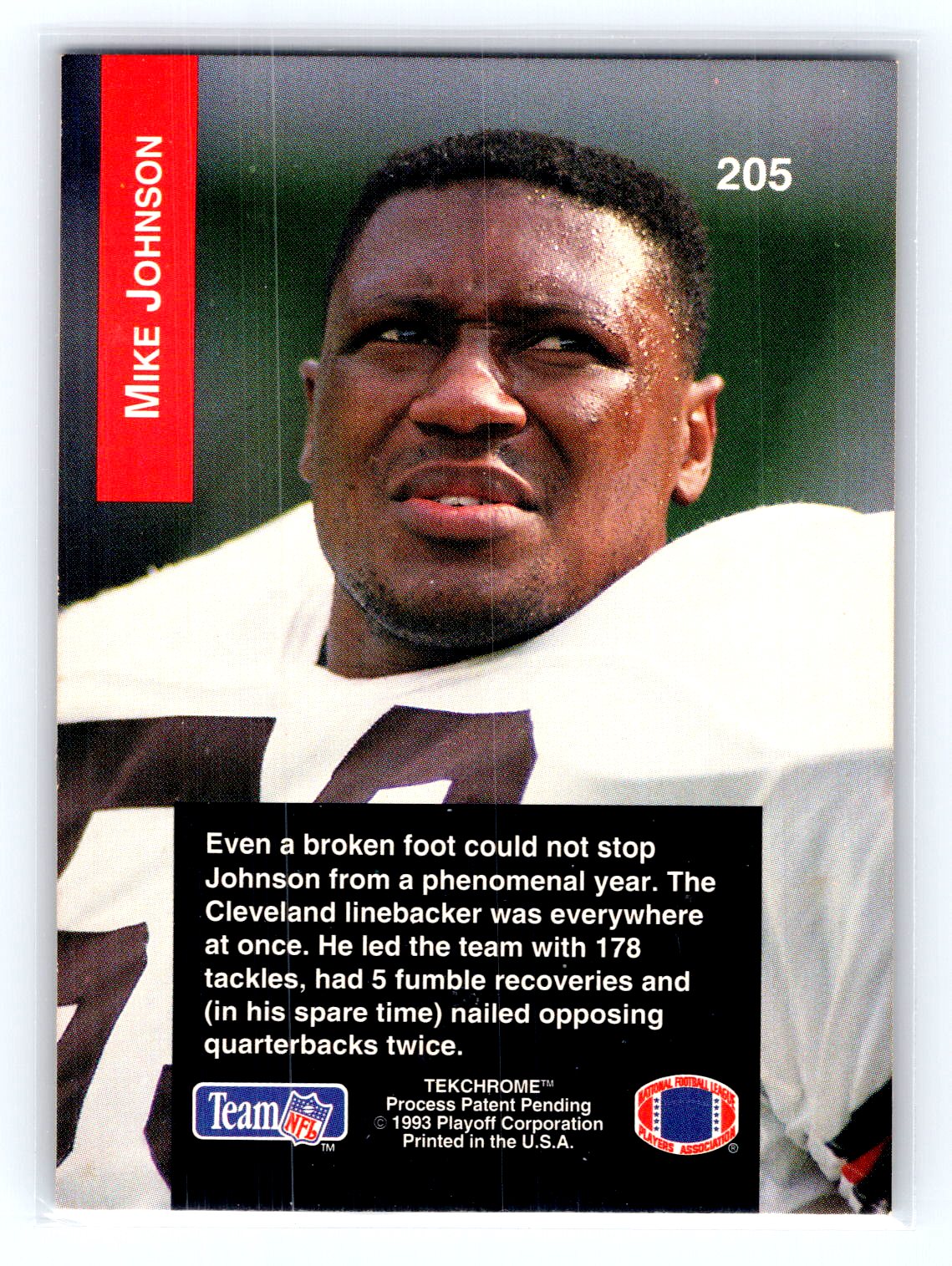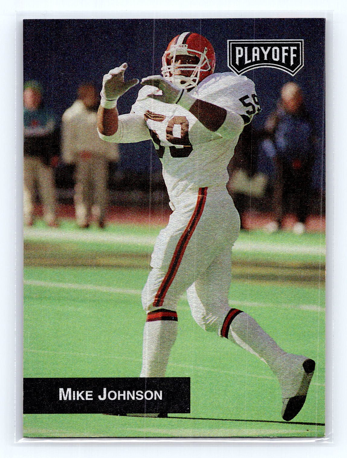 This is a really nice example of a 1993 Playoff #205 Mike Johnson .