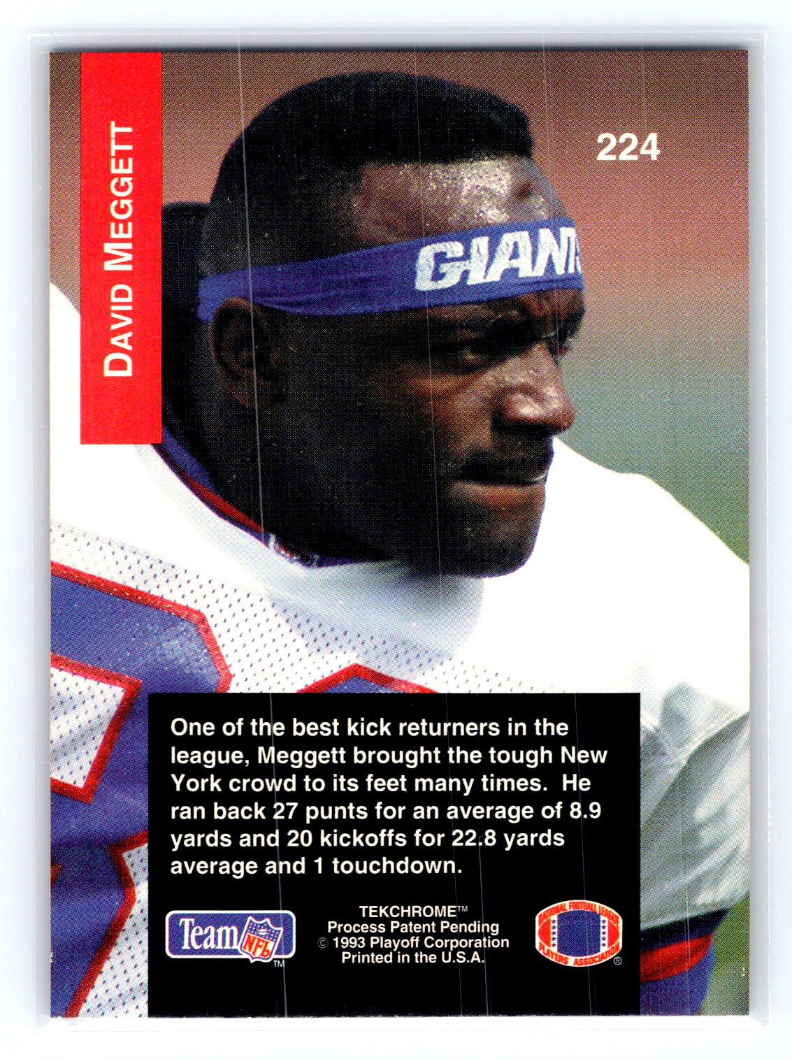 This is a really nice example of a 1993 Playoff #224 David Meggett .
