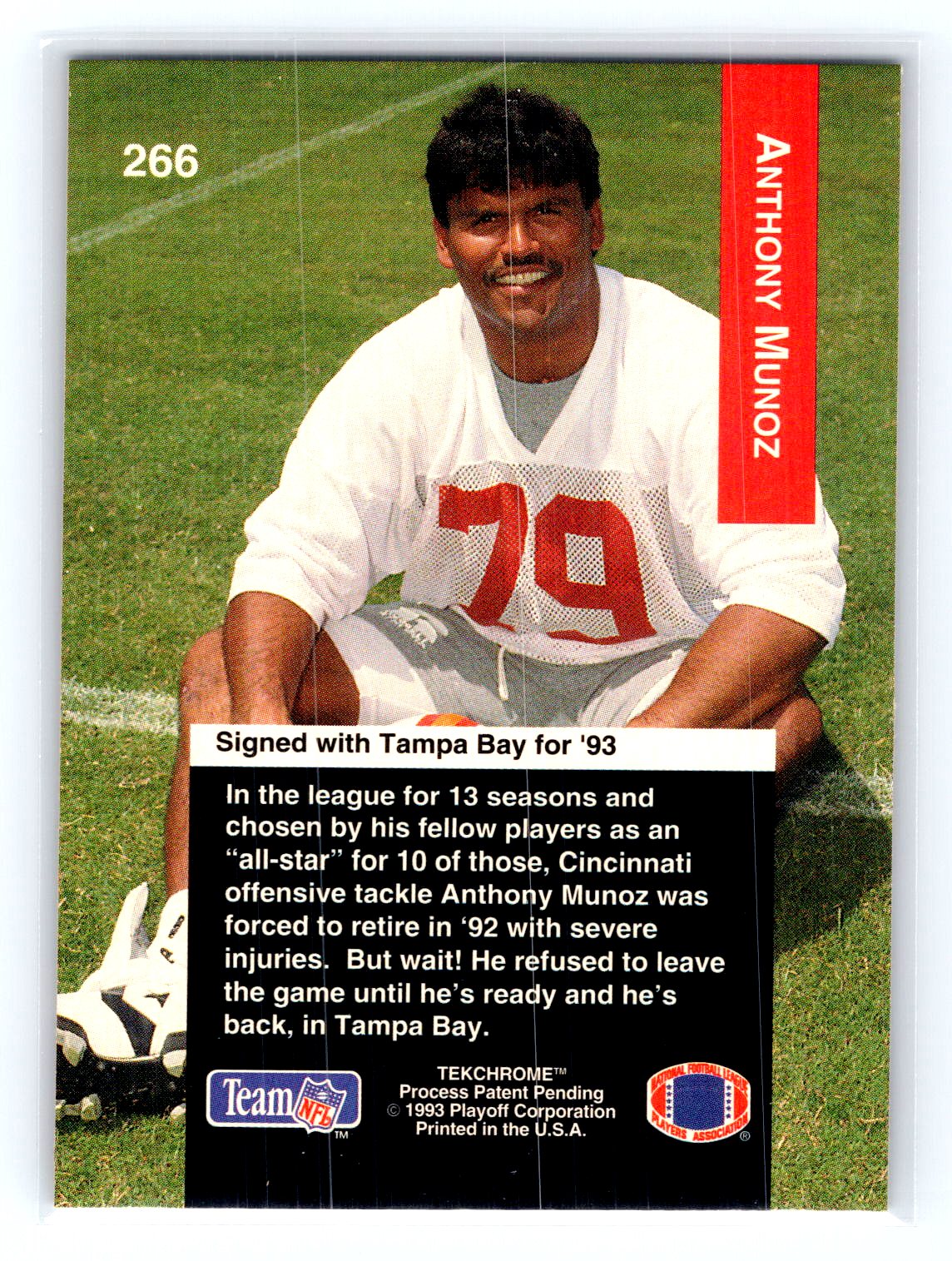This is a really nice example of a 1993 Playoff #266 Anthony Munoz .