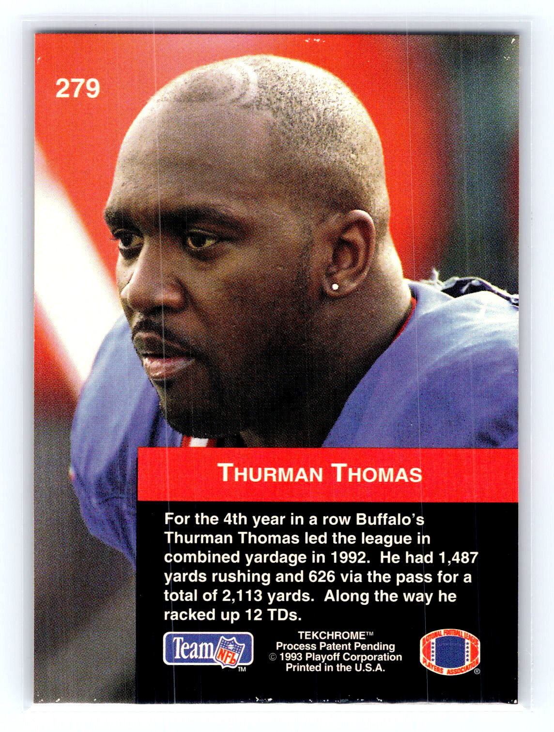 This is a really nice example of a 1993 Playoff #279 Thurman Thomas .