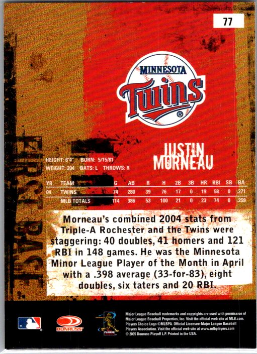 In 2005 Justin Morneau played for the Minnesota Twins.