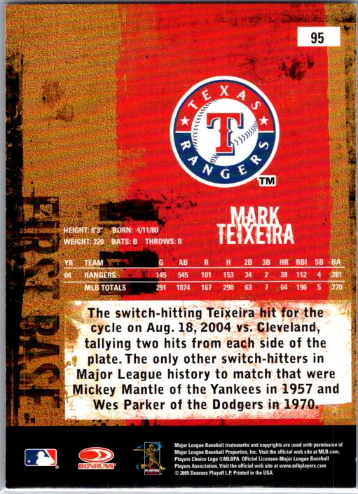 In 2005 Mark Teixeira played for the Texas Rangers.