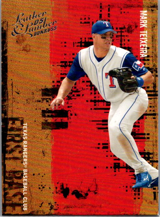 This is a really nice example of a 2005 Donruss Leather & Lumber #95 Mark Teixeira .