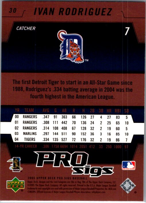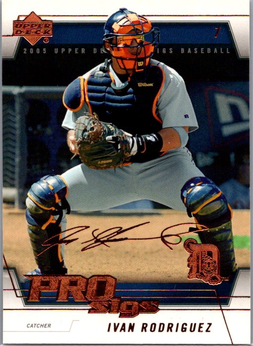 This is a really nice example of a 2005 Upper Deck Pro Sigs #30 Ivan Rodriguez .