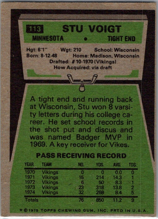 In 1974 Stu Voigt played for the Minnesota Vikings.