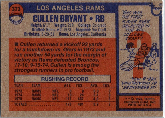 In 1976 Cullen Bryant played for the Los Angeles Rams.