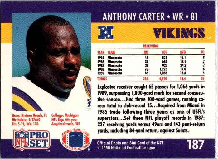 1990 Pro Set #187 Anthony Carter