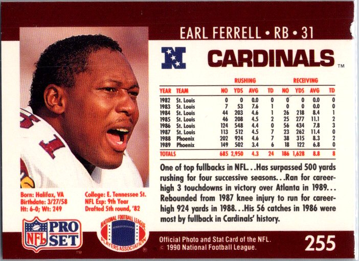 In 1990 Earl Ferrell played for the Phoenix Cardinals.