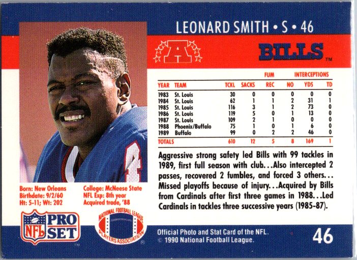 This is a really nice example of a 1990 Pro Set #46 Leonard Smith .