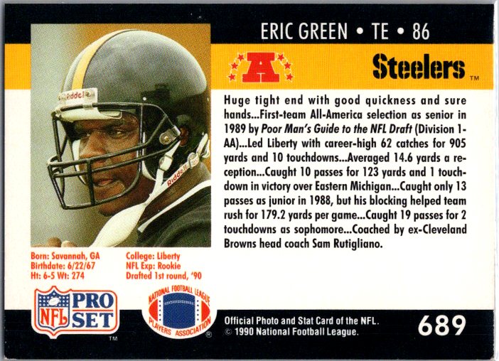 In 1990 Eric Green played for the Pittsburgh Steelers.