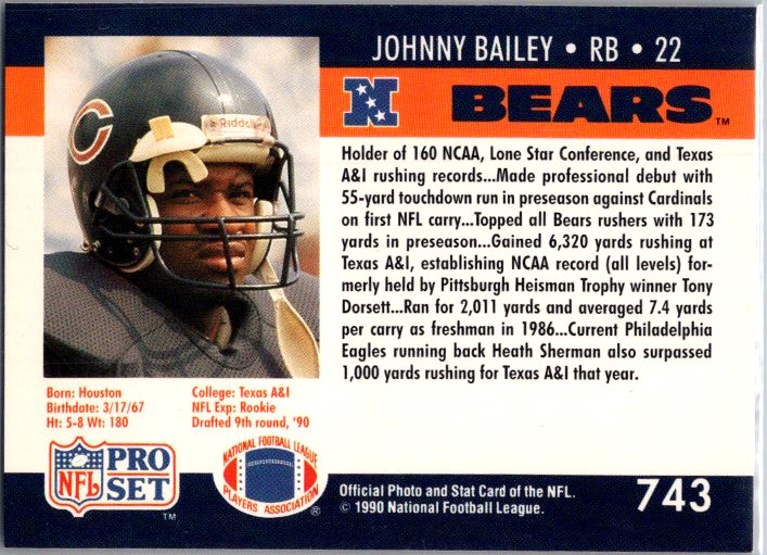 In 1990 Johnny Bailey played for the Chicago Bears.