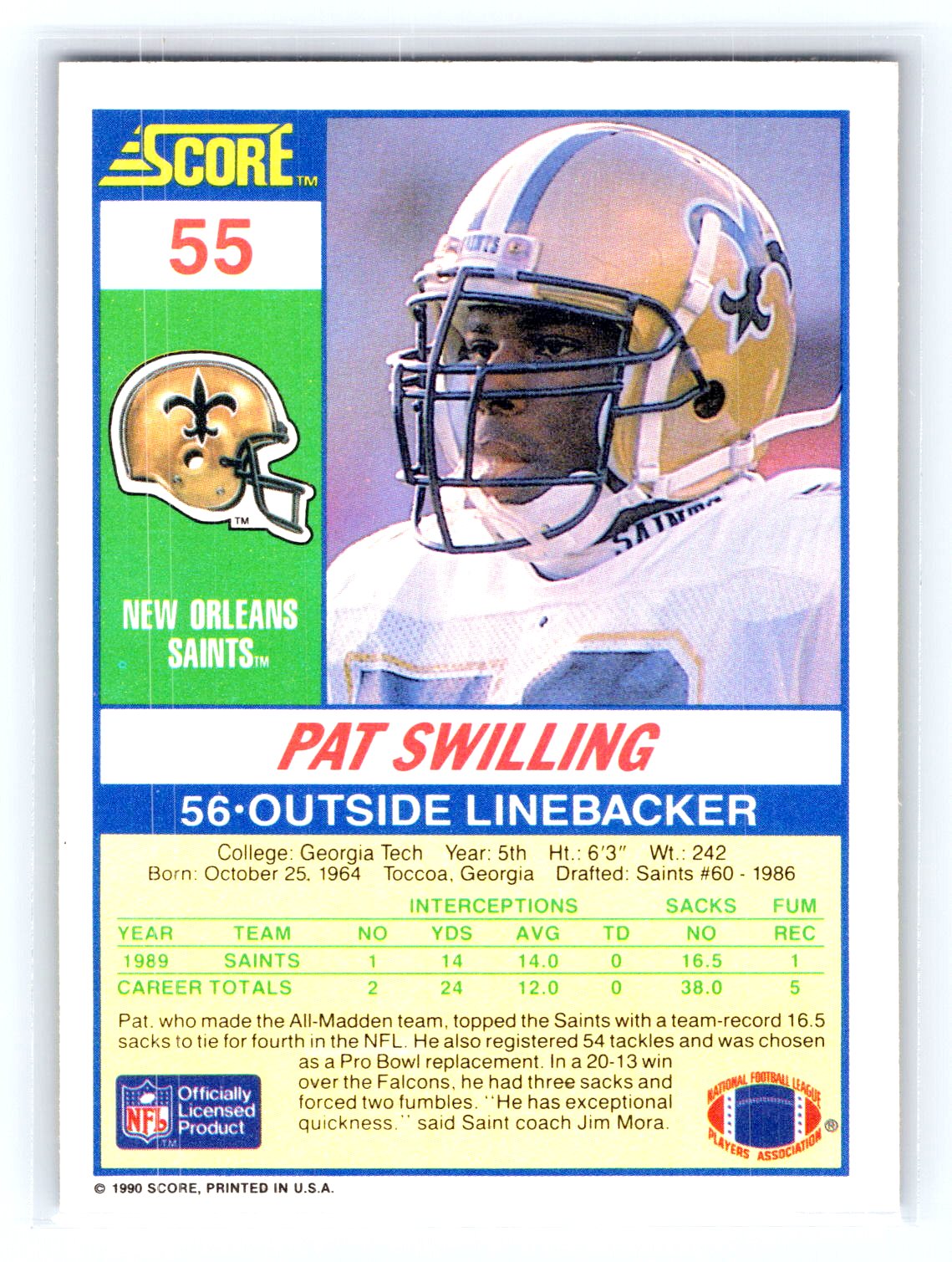 In 1990 Pat Swilling played for the New Orleans Saints.
