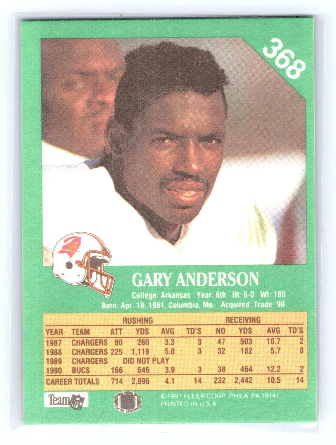 In 1991 Gary Anderson played for the Tampa Bay Buccaneers.