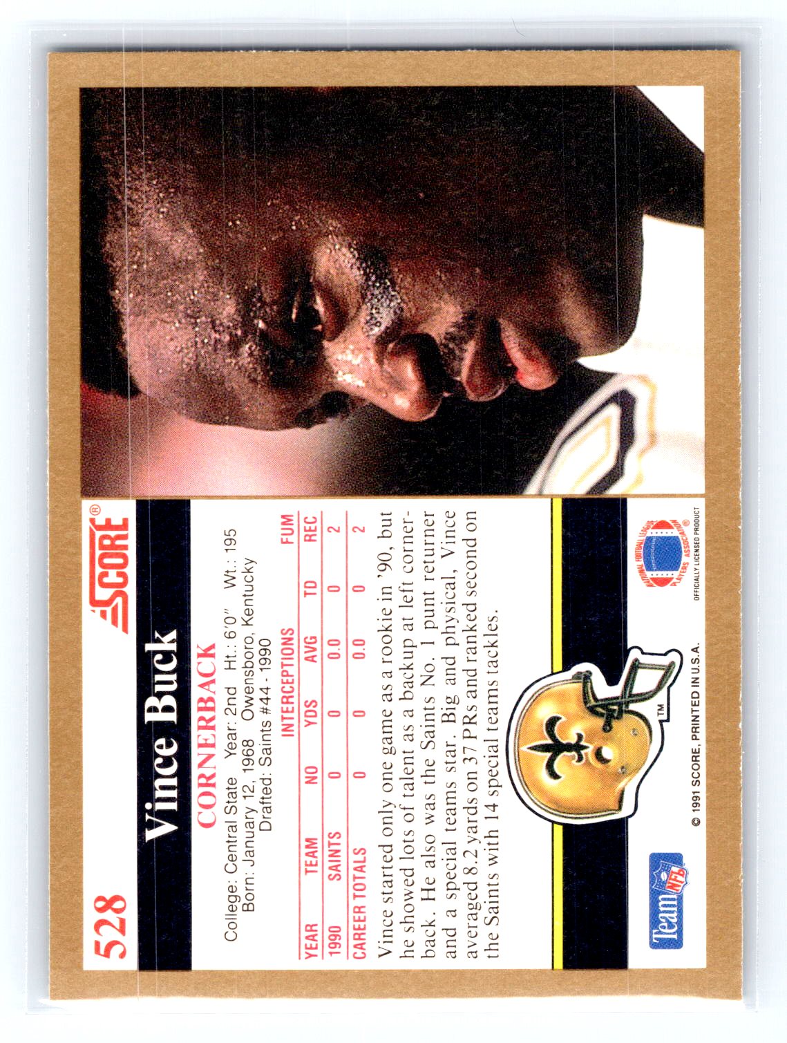1991 Score #528 Vince Buck