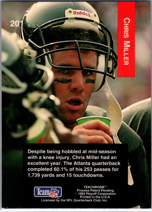 This is a really nice example of a 1993 Playoff #201 Chris Miller .