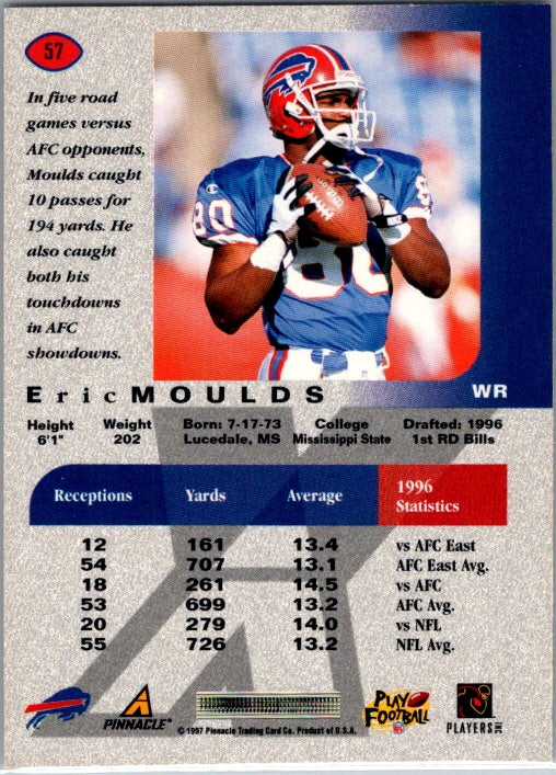 This is a really nice example of a 1997 Pinnacle X-Press #57 Eric Moulds .